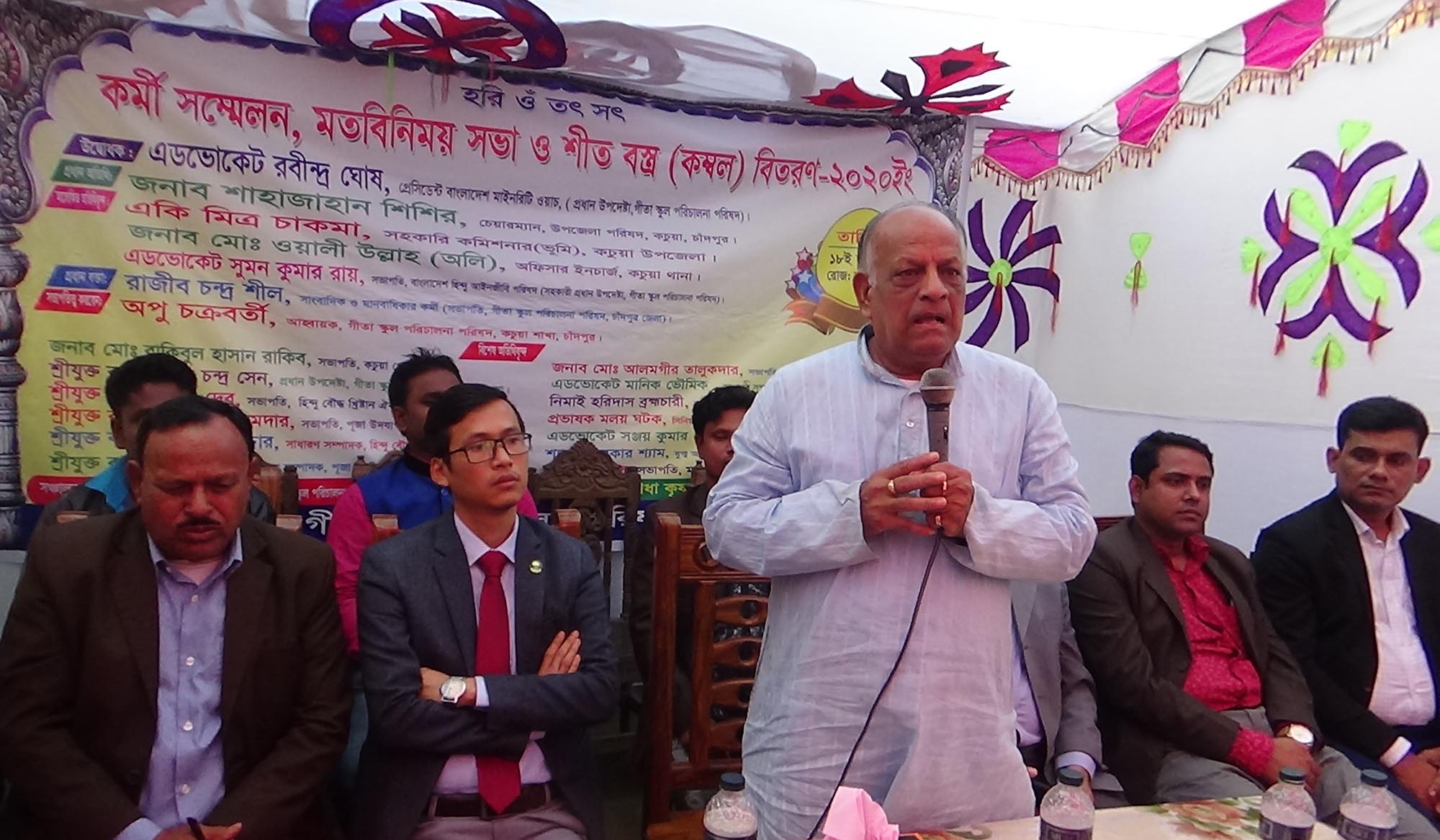 ছবি: কর্মী সম্মেলনের উদ্বোধন করছেন বাংলাদেশ মাইনরিটি ওয়াচের কেন্দ্রিয় কমিটির সভাপতি ও গীতা স্কুল পরিচালনা পরিষদের প্রধান উপদেষ্টা এ্যাডভোকেট রবীন্দ্র ঘোষ।