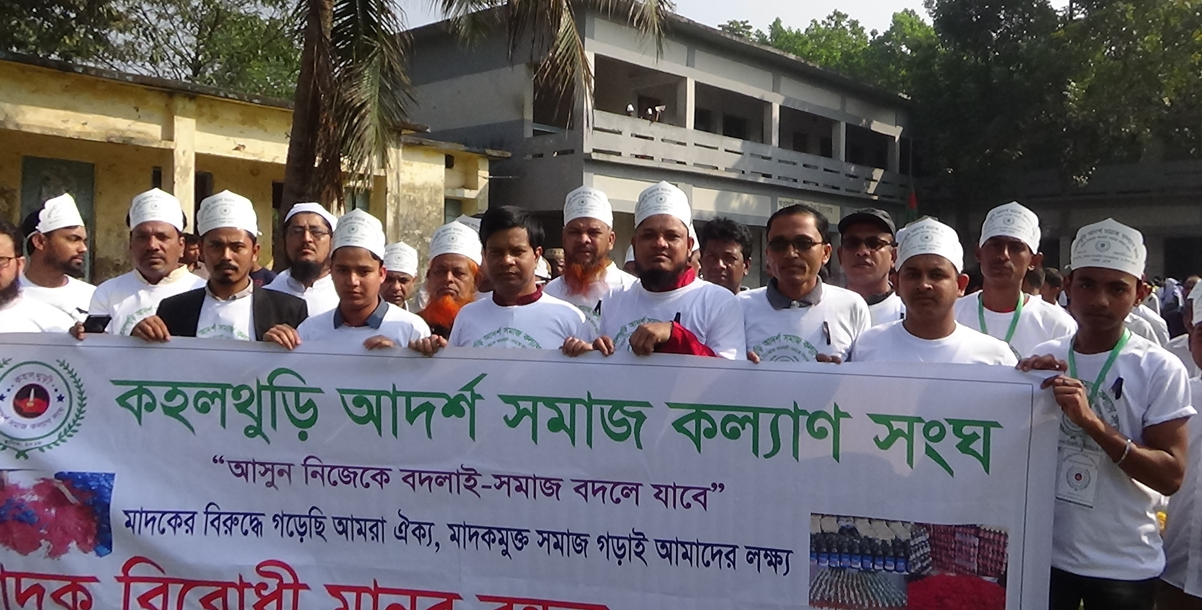 ছবি: কচুয়ার কহলথুাড়ি এলাকায় আদর্শ সমাজ কল্যান সংঘের উদ্যোগে ্আয়োজিত মাদক বিরোধী র্যালির একাংশ