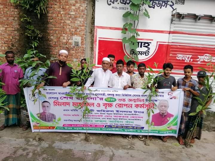 বৃক্ষরোপণ শেষে মানণীয় প্রধানমন্ত্রী শেখ হাসিনার দীর্ঘায়ু কামনা করে দোয়া ও মোনাজাত অঙ্গসংগঠনের নেতৃবৃন্দ ও এলাকার বিভিন্ন শ্রেনি পেশার মানুষ উপস্থিত ছিলেন।