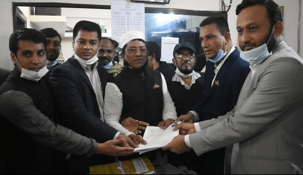 ছবি: কচুয়া পৌরসভা নির্বাচনে রির্টানিং অফিসারের নিকট মেয়র পদে মনোনয়নপত্র দাখিল করছেন আওয়ামী লীগ দলীয় প্রর্থী নাজমুল আলম স্বপন।