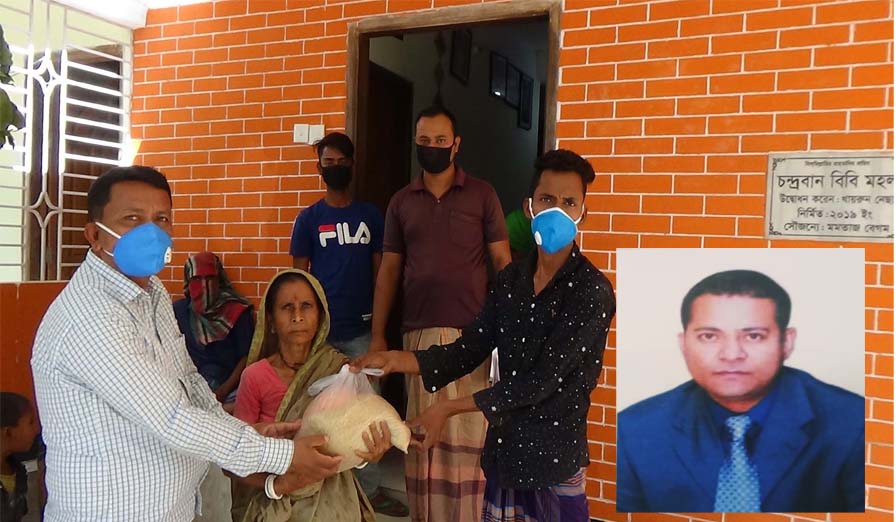 ছবি: কচুয়ার নলুয়ায় আমেরিকা প্রবাসী ইঞ্জিনিয়ার মাইনুল ইসলামের পক্ষ থেকে খাদ্য সামগ্রী বিতরনের একংশ। ইনসেটে আমেরিকা প্রবাসী ইঞ্জিনিয়ার মাইনুল ইসলামের ফাইল ছবি।