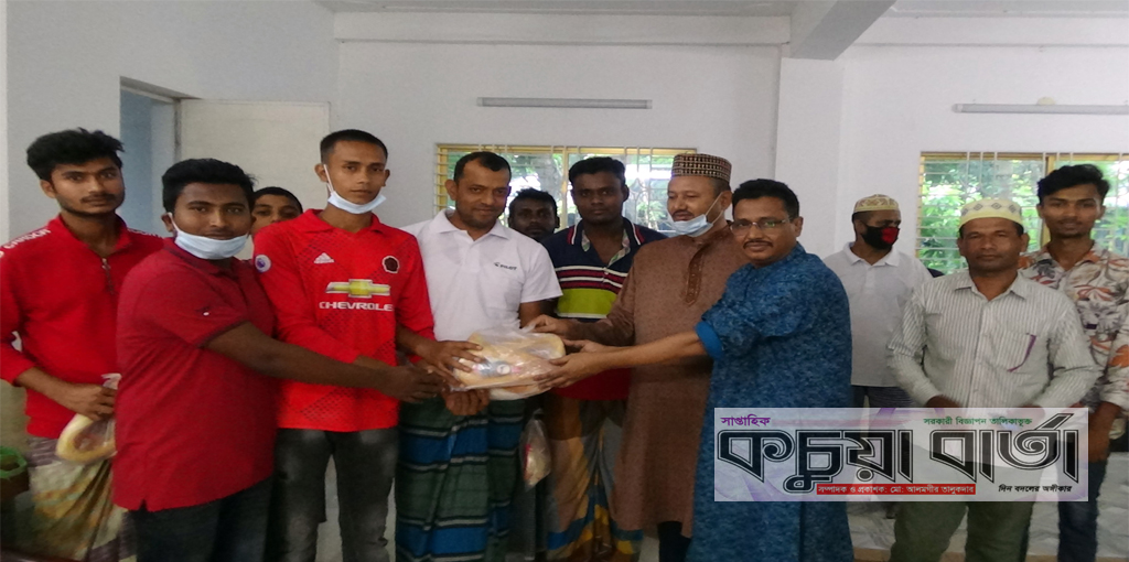 ছবি: কচুয়ায় বিএনপি নেতা ইঞ্জিনিয়ার মানিক কহলথুড়ি সমাজ কল্যান সংঘের সদস্যদের মাঝে ইফতার সামগ্রী বিতরনের একাংশ।