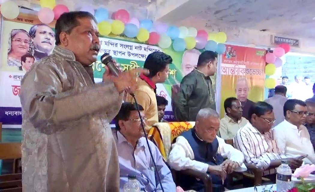 ছবি: জীবদশায় সাচারে পূুজা উদযাপন অনুষ্ঠানে বক্তব্য রাখছেন তিমির সেন গুপ্ত(ফাইল ছবি )