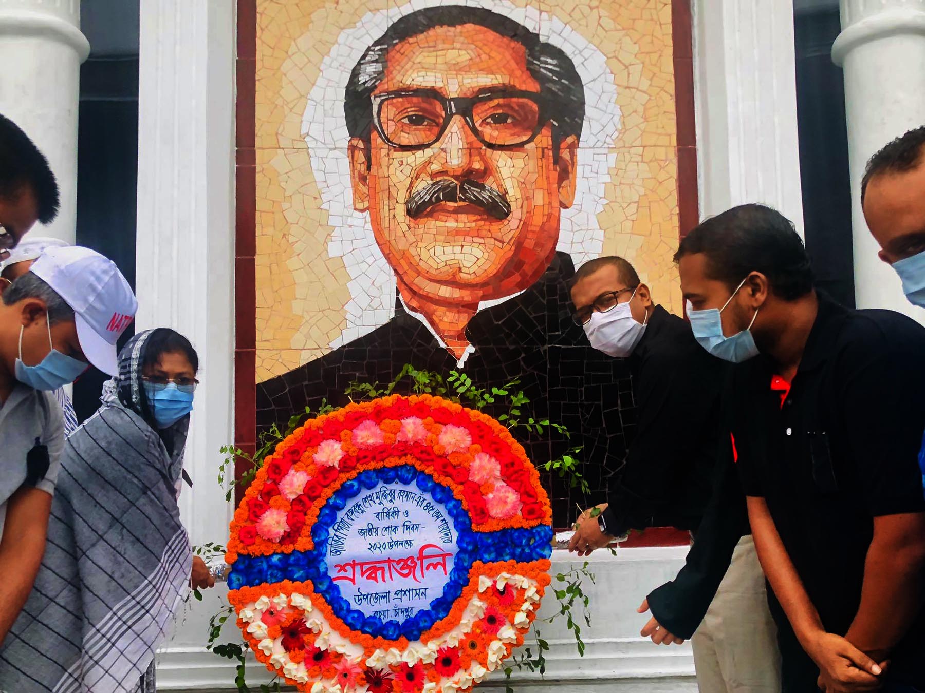 ছবি: জাতায় শোক দিবস উপলক্ষে জাতির জনক বঙ্গবন্ধু শেখ মুজিবুর রহমানের প্রতিকৃতিতে পুস্পস্তবক অর্পনের একাংশ ।