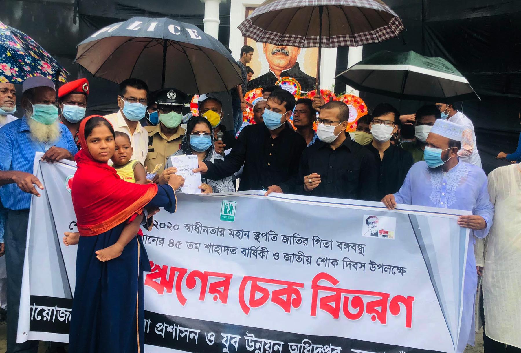 জাতীয় শোক দিবস উপলক্ষে যুব উন্নয়ন অধিদপ্তরের আয়োজনে যুবদের মাঝে চেক বিতরণের একাংশ।