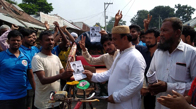 ছবি: কচুয়ার রাগদৈলে চশমা প্রতীকে ভোটারদের কাছে ভোট প্রার্থনা করছেন স্বতন্ত্র চেয়ারম্যান প্রার্থী এসএম শুভ।