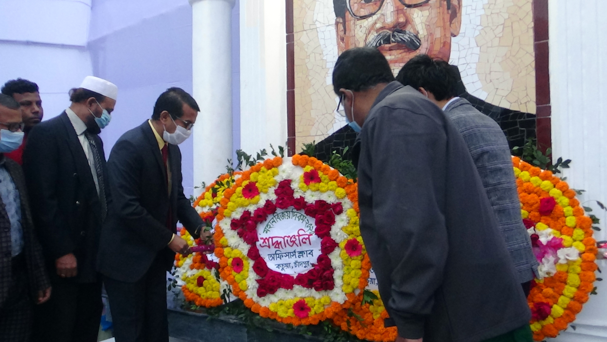 ছবি: মহান বিজয় দিবসে কচুয়া প্রেসক্লাবের পক্ষে ফুল দিয়ে শ্রদ্ধা নিবেদনের একাংশ ।